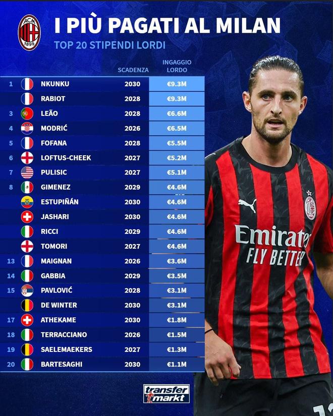 北京时间11月21日,周德编制了AC米兰本赛季税后工资前20名的球员。两名新球员恩昆库和拉比奥特以 930 万欧元并列第一,莱奥以 660 万欧元排名第三,莫德里奇以 650 万欧元排名第四,普利西奇以 510 万欧元排名第七,塞尔·马克斯以 130 万欧元排名第 19。据德方统计,米兰本赛季税前工资排名前20位的球员分别为:1.恩昆库930万欧元(合同至2030年)1.拉比奥特930万欧元(合同至2028年)3.莱奥660万欧元(合同至2028年)4.莫德里奇650万欧元(合同至2026年)5.优素福福法纳5.5 100万欧元(合同至2028年) 6. 洛夫图斯-奇克 520万欧元(合同至2027年) 7. 普利西奇 510万欧元(合同至2027年) 8. 圣地亚哥·希门尼斯 460万欧元(合同至2029年) 8. 爱沙尼亚 460万欧元(合同至2027年) 8. Yashari 460万欧元(合同至2030年) 8. Samuele Ricci 4.6英里10亿欧元(合同至2029年) 8.托莫里 460万欧元(合同至2027年) 13.梅尼昂 360万欧元(合同至2026年) 14.加比亚 350万欧元(合同至2026年、2029年) 15.巴甫洛维奇 310万欧元(合同至2028年) 15. 德温特 310 万欧元(合同至 2030 年) 17. Arte Came 180 万欧元(合同至 2030 年) 18. Pietro Terraciano 150 万欧元(合同至 2026 年) 19. 萨利赫·马克尔斯 130 万欧元(合同至 2027 年) 20. 巴特萨吉 110 万欧元(合同至2030年)